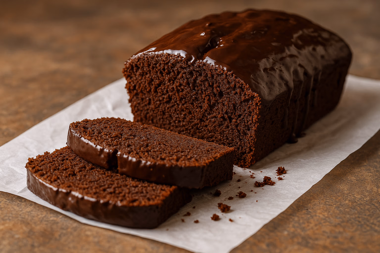 Überziehe den Schokoladenkuchen mit Zartbitter-Glasur oder bestreue ihn mit Kakaonibs, gehackten Nüssen oder frischen Beeren.