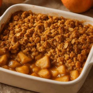 Backen: Die Streusel gleichmäßig über die Apfelfüllung verteilen und ca. 25 Minuten backen, bis sie goldbraun sind.